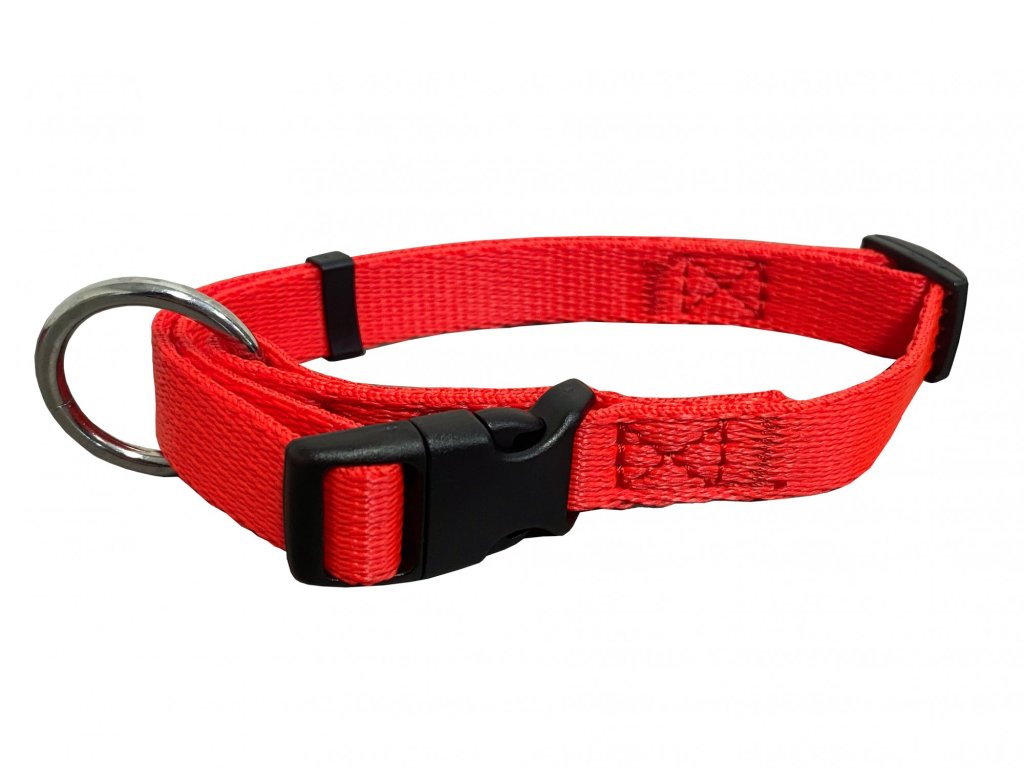 HUHUBAMBOO obojek JEDNOBAREVNÝ popruhovýObojky jsou vyrobeny z velmi měkkého a příjemného nylonového popruhu. Disponují zapínáním na plastovou přezku a mají jednoduše nastavitelný obvod. Součástí je svařovaný kovový kroužek pro připnutí vodítka. Obojky jsou vhodné pro střední i velká plemena. Před zapnutím provlékněte přezku kroužkem. Pokud ji neprovléknete, dochází tak ke kroucení obojku. Rozměry: 1,5 cm x 30-50 cm. Barva: červená.