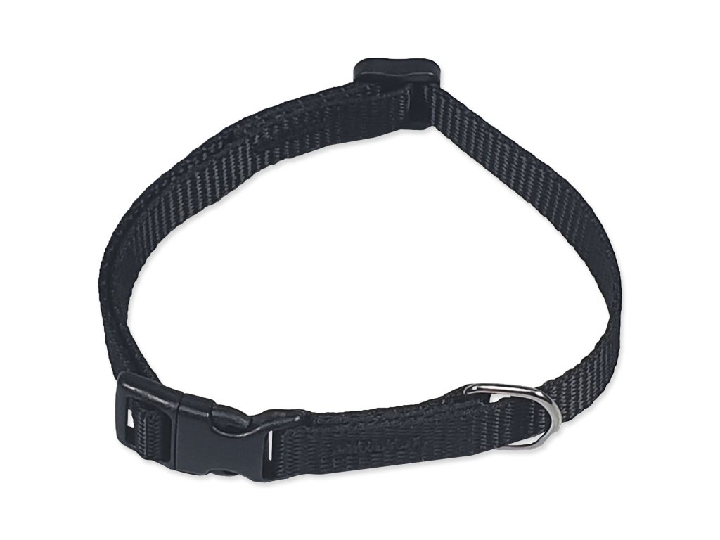 Obojek z popruhu v jednobarevném provedení se zapínáním na plastovou přezku. Jednoduchá nastavitelnost obvodu.