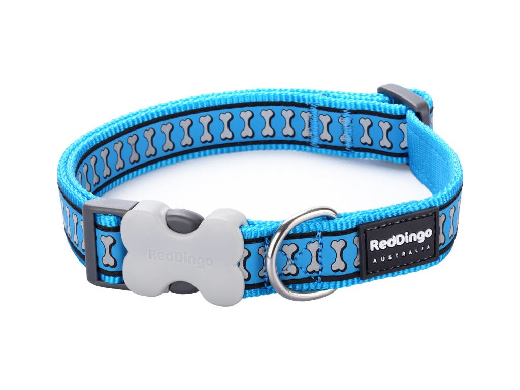 Red Dingo obojek reflexní – Bones Turquoise – 20 mm x 30-47 cm