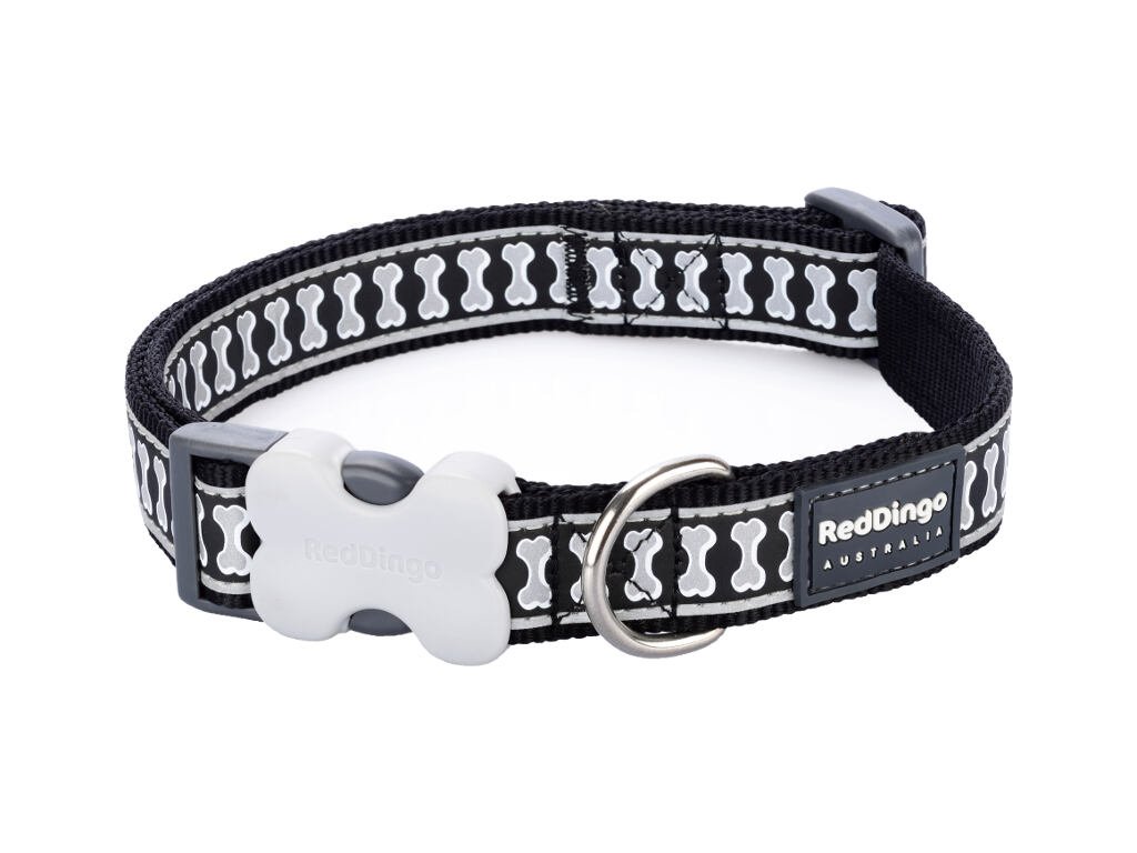 Red Dingo obojek reflexní – Bones Black – 25 mm x 41-63 cm