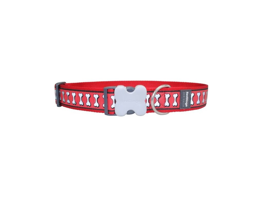 Velikost obojku: 50 - 80 cm. Šířka 40 mm. Obojky Red Dingo jsou vyrobené z kvalitního nylonového popruhu. Okraje jsou hustě tkané pro ještě větší odolnost vůči oděru. Našitá reflexní stuha velmi dobře odráží pouliční světlo, světla aut, cyklistů apod. Při dopadu světla na obojek dochází k jeho výraznému odrazu od reflexních ploch – kostiček. Reflexní řada výrobků Red Dingo výrazně přispívá k bezpečnosti Vašich čtyřnohých kamarádů během Vašich procházek nejen za šera a tmy. S reflexními výrobky Red Dingo budete originální a budete vidět! Obojky jsou vybaveny originální plastovou sponou Bucklebone ve tvaru kosti. Spona patří mezi nejpevnější na trhu a je vyrobená pouze z toho nejlepšího materiálu. I přes malou velikost jde spona velice dobře otevírat. Kroužek je vyrobený z nerezové oceli a nemůže tak obarvit srst psa. Zakončení popruhu je pod úhlem 20 stupňů, čímž je dosaženo maximálního komfortu pro psa.Doplňkové parametry