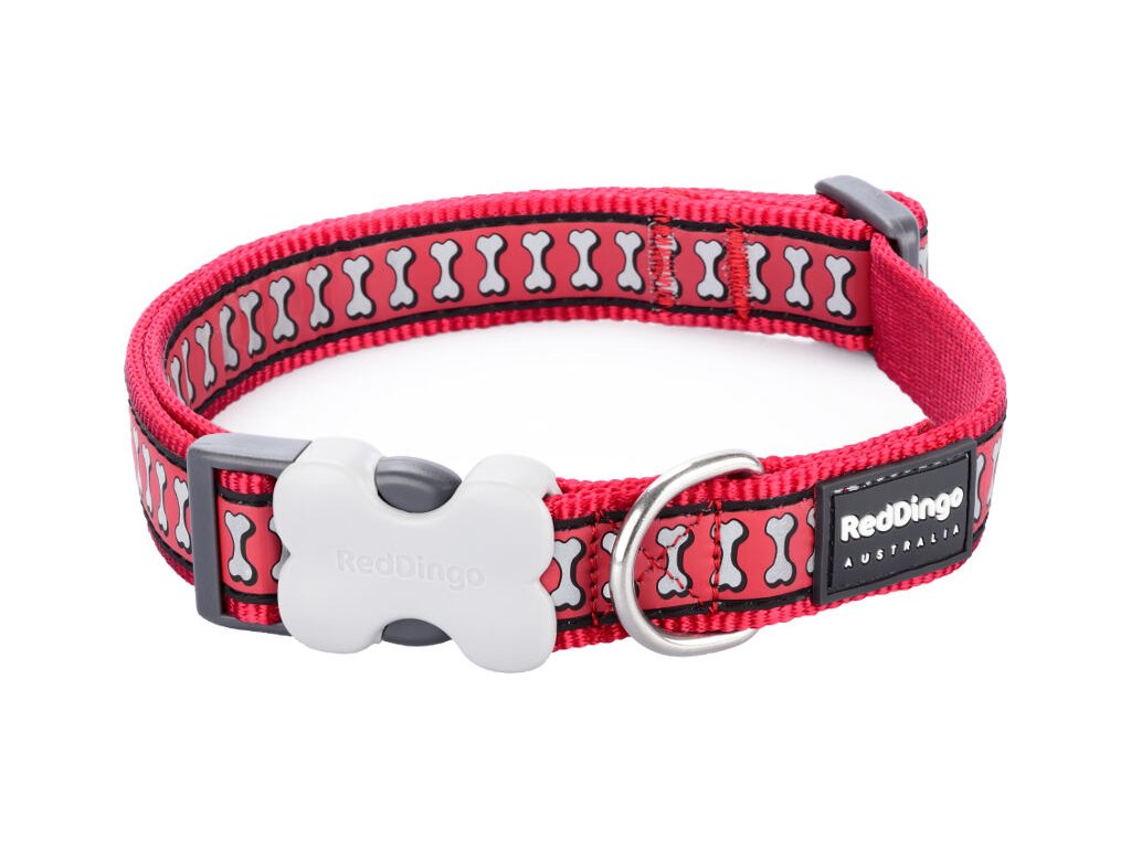 Red Dingo obojek reflexní – Bones Red – 25 mm x 41-63 cm