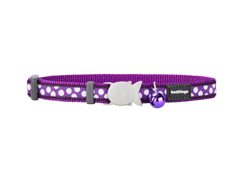 Red Dingo obojek pro kočky – White Spots on Purple – 12 mm