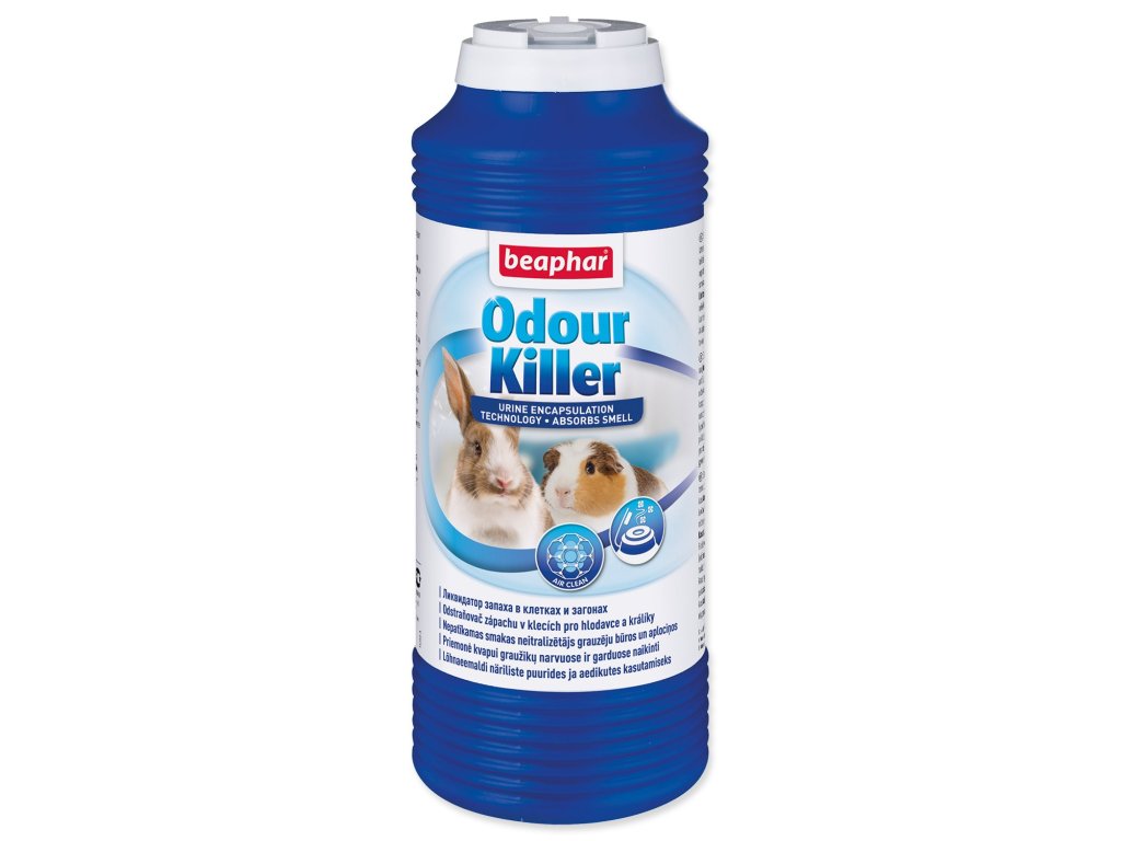 Návod k použití: Nasypte granule Odour Killer na spodní část klece nebo na podlahu kotce, obzvláště na místa, která zvířata používají k vyprazdňování. Proces opakujte po každém čištění klece/kotce.