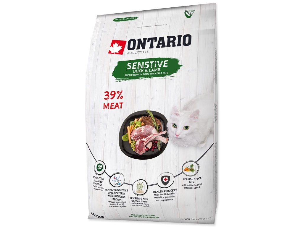 Krmivo Ontario Cat Sensitive/Derma 6,5kg
