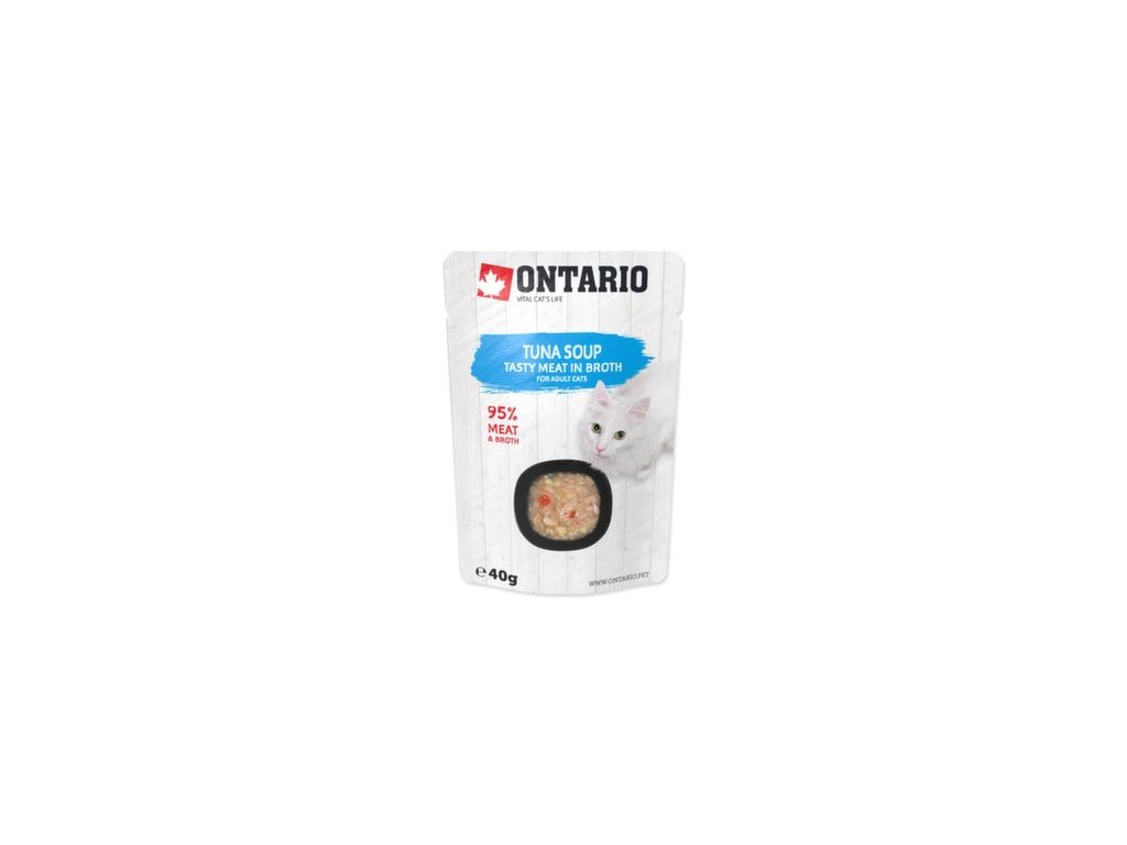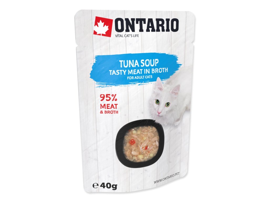 Doplňkové krmivo pro dospělé kočky – polévka s kousky tuňáka, kterou můžete dopřát samostatně nebo jako doplněk k suchému krmivu.