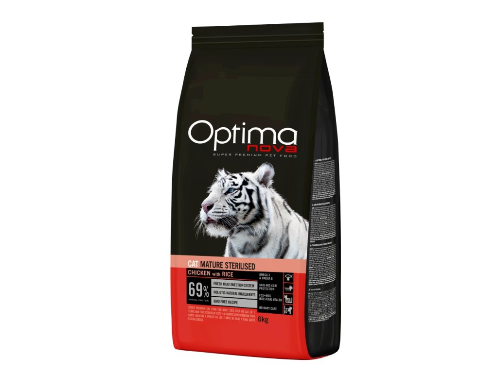 OPTIMAnova Cat Mature Sterilised složené z kvalitních bílkovin a lehce stravitelných sacharidů v kombinaci s prospěšnými tuky. Krmivo obohacené o vitamíny, minerální látky a antioxidanty.