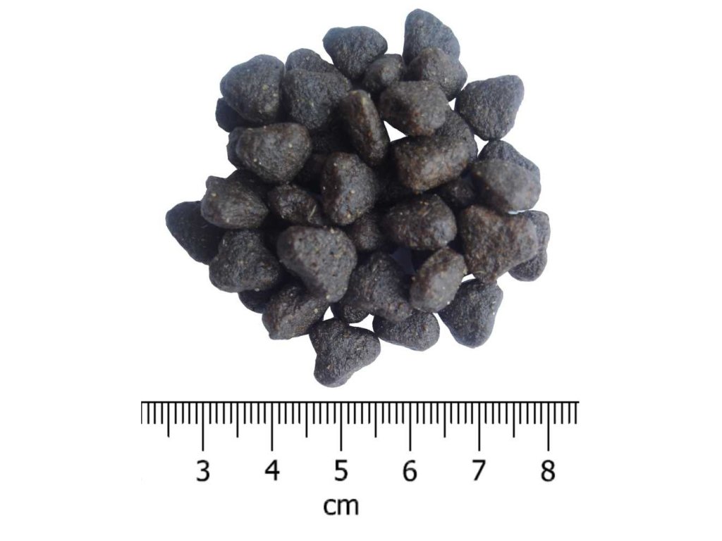 Analytické složky: hrubý protein 30 %, hrubý olej a tuky 18 %, EPA+DHA 400 mg / kg, Omega-3 mastné kyseliny 0,50 %, Omega-6 mastné kyseliny 1,45 %, hrubá vláknina 3,0 %, hrubý popel 7,5 %, vápník 1,0 %, fosfor 0,80 %. Metabolizovatelná energie: 3 947 kcal/kg.