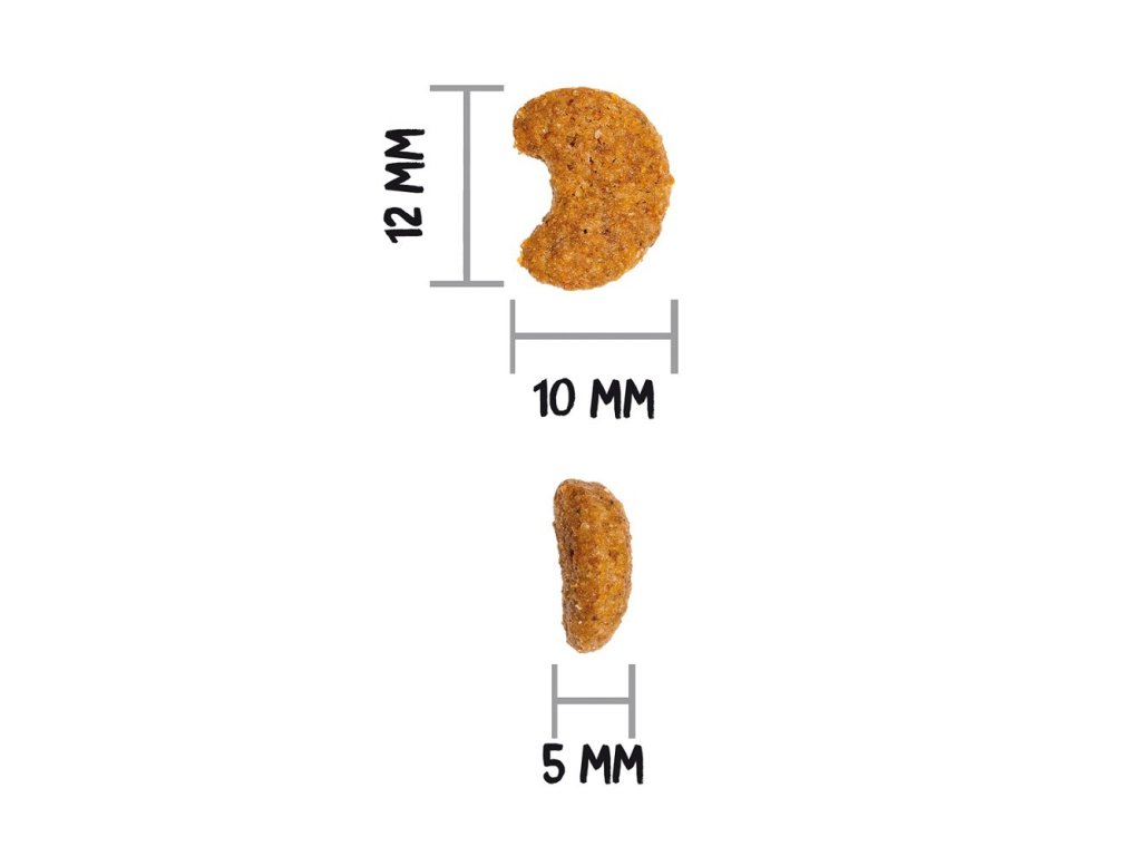 SLOŽENÍ: Maso 37% (dehydratované maso 27%, čerstvé kuřecí maso* 10% před vytlačováním), celozrnná pšenice* (19%), kuřecí tuk, celozrnná kukuřice* (8%), celý hrách* (7%), celozrnný ječmen* (5%), hnědá rýže* (5%), kukuřičné proteiny, pivovarské kvasnice* (1,5%), řepné řízky, hydrolyzovaný kuřecí protein, sušené ryby, jablko* (1%), lososový olej, sladový výtažek, fruktos- a mannan-oligosacharidy, aromatické byliny 0,02% (fenykl*, Heřmánkový květ*, anýz zelený*), juka schidigera.*Přírodní ingredience.