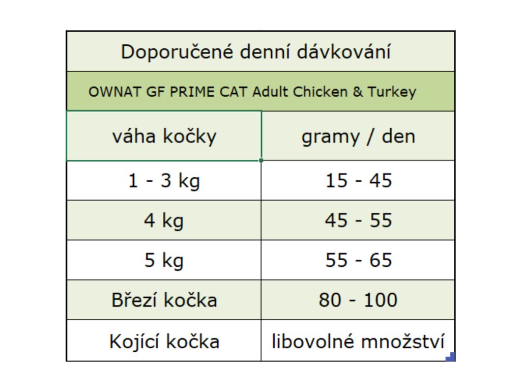 OWNAT GF PRIME CAT Adult Chicken & Turkey je bezobilné