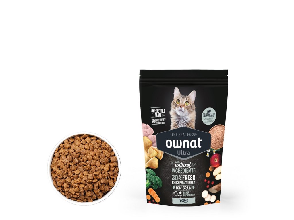 Ownat Ultra Young je výživově vyvážené krmivo určené pro dospělé kočky všech plemen s běžnou úrovní aktivity. Obsahuje 30 % čerstvého kuřecího a krůtího masa, doplněného o rybí složky (losos) a další přírodní suroviny. Díky vysokému obsahu kvalitních bílkovin podporuje svalovou kondici, vitalitu a zdravou srst.
