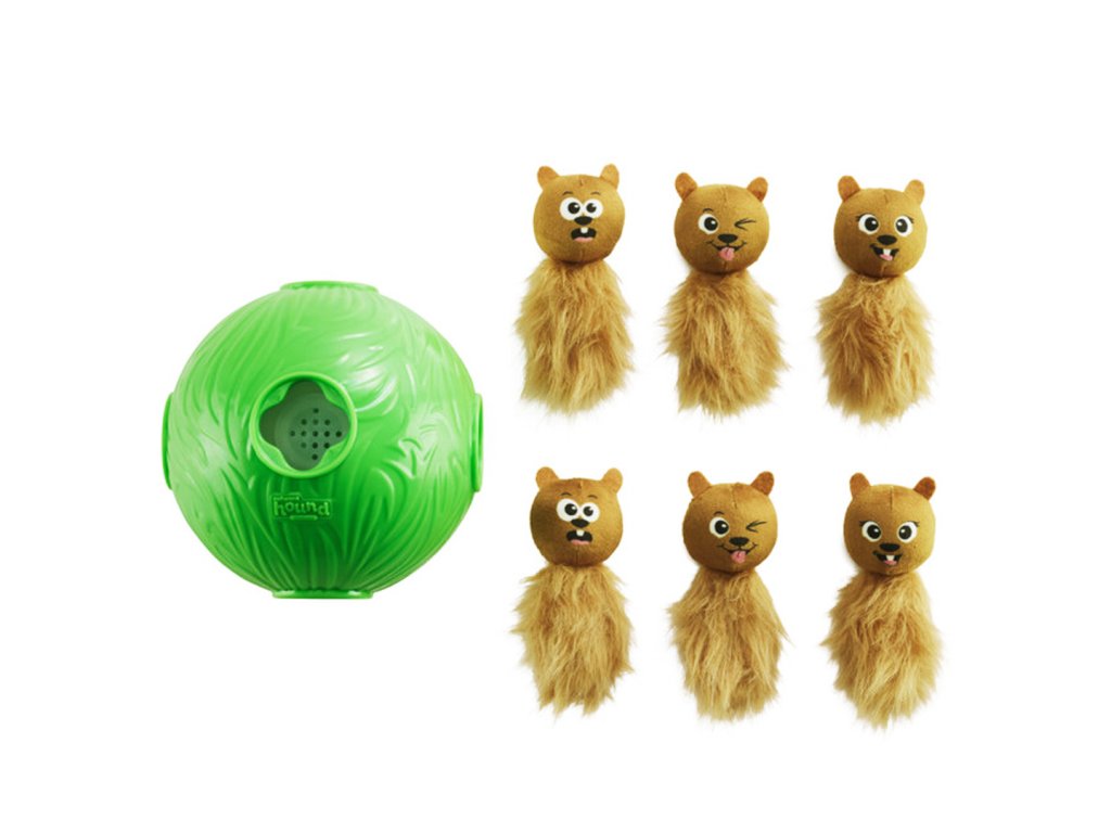 Hlavolam se skládá z jedné obří gumové koule se šesti úkryty na pamlsky a z šesti roztomilých plyšových čipmánků (veverek), kteří ti budou chtít zabránit v dolování pamlsků ven z koule. Tento hlavolam přináší zábavu všem pejskům bez ohledu na velikost, věk či plemeno.