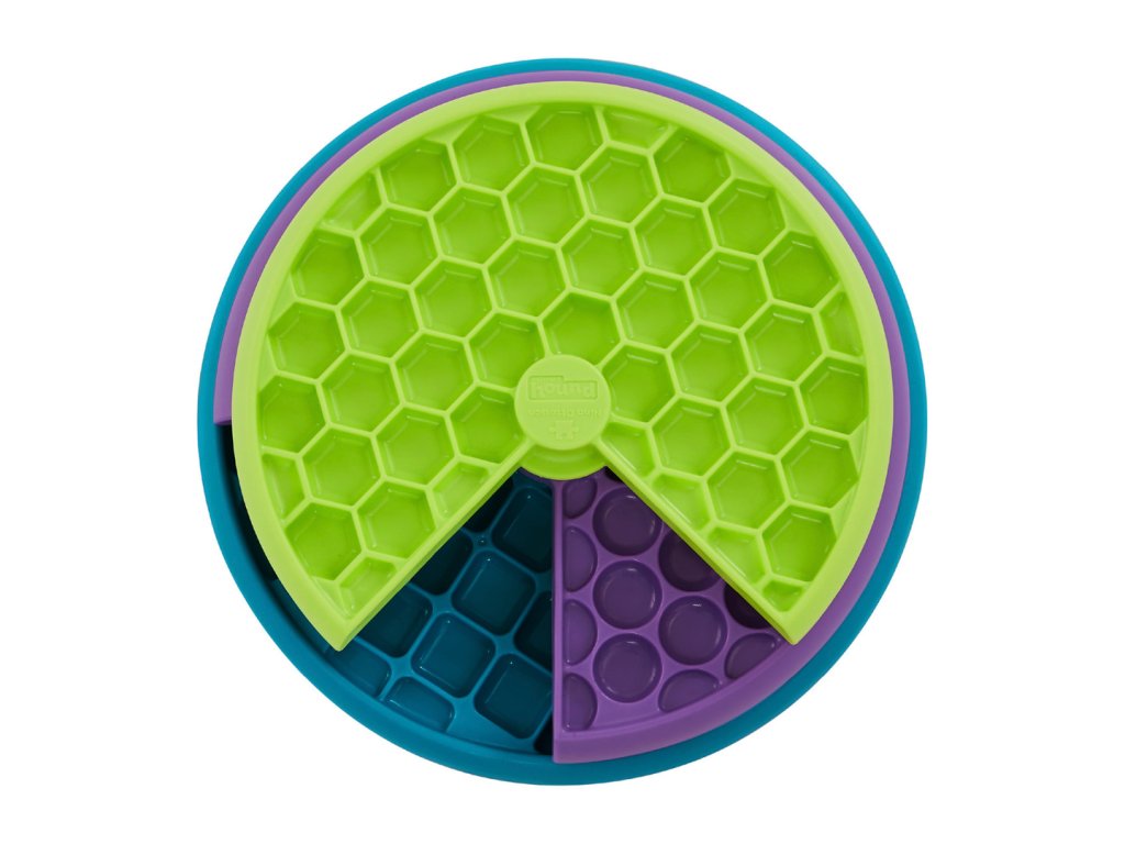 Otočný hlavolam se třemi patry zpomalovacích misek! Skvělá zábava pro hltače a zaručený zabiják nudy.Tři patra zpomalovacích misek spojených do jednoho otočného hlavolamu. Naplňte všechna patra krmnou dávkou granulek, mokrého krmení nebo dobrot jen tak pro zábavu a nabídněte hlavolam vašemu pejskovi. Hlavolam obsahuje celkem víc jak 100 prohlubní a pojme cca 350ml krmiva (1,5 caps).