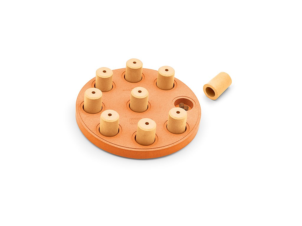 Vyndejte z hlavolamu všechny kolíky, do každého otvoru umístěte pamlsek a znovu přikryjte. O co víc pamlsků přikryjete, o to větší bude zábava :-). Naznačte svému parťákovi, kde je odměna schovaná a nechte ho hledat. Pejsci jsou chytřejší, než si myslíte, jen jim občas musíme pomoct najít správnou cestu. Pokud je pro vašeho pejska hlavolam příliš složitý a ztrácí pozornost, nechte některou část odkrytou, aby se k odměně dostal snadno a měl chuť hledat další.