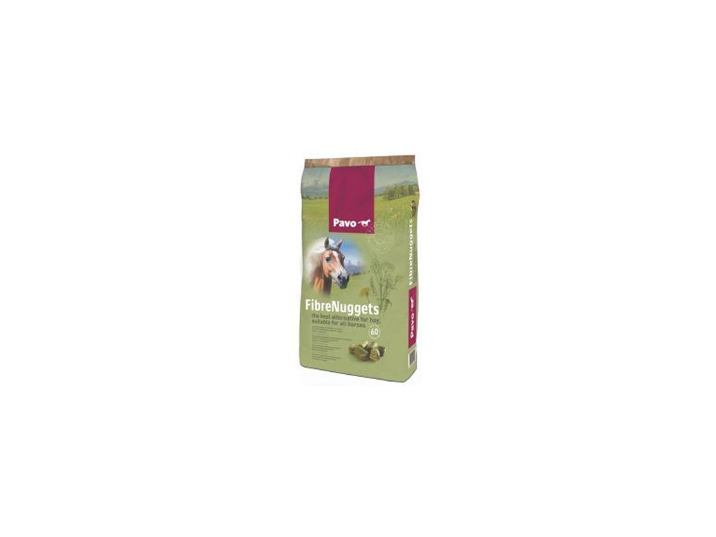 Krmivo Pavo FibreNuggets lze použít jako vysoce kvalitní náhradu sena. Velké pelety s vysokým obsahem vlákniny, vyrobené ze 100% travin z pastvin z alpského podhůří v jižním Německu, u vašeho koně stimulují žvýkání a slinění. Více žvýkání zabraňuje nudě a sliny podporují zdravé trávení. Voňavá a chutná tráva z pastvin obsahuje více než 60 různých druhů travin a bylin. Je bohatá na vlákninu, přírodní vitamíny a stopové prvky a je zcela bez melasy a obilovin. Díky řízenému procesu sušení má krmivo FibreNuggets vysoce konzistentní kvalitu bez plísní či prachu. To z něj také činí ideální náhradu pro koně citlivé na prach a/nebo plísně.