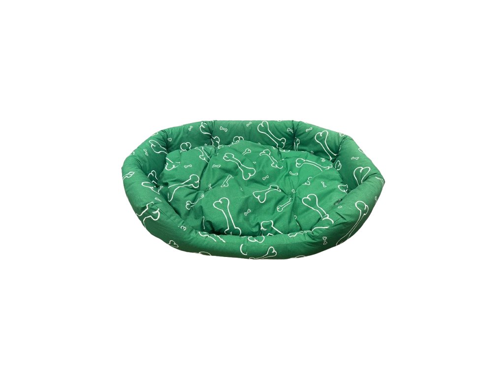Pohodlný, kvalitní pelech vyrobený z bavlněné látky s potiskem kostí. Zvýšený okraj poskytuje perfektní oporu a tepelnou izolaci. Pelíšek je v několika bodech prošitý, aby nedošlo k nerovnoměrnému rozmístění výplně. Polštářek je vyjímatelný. Pelech se lehce udržuje.