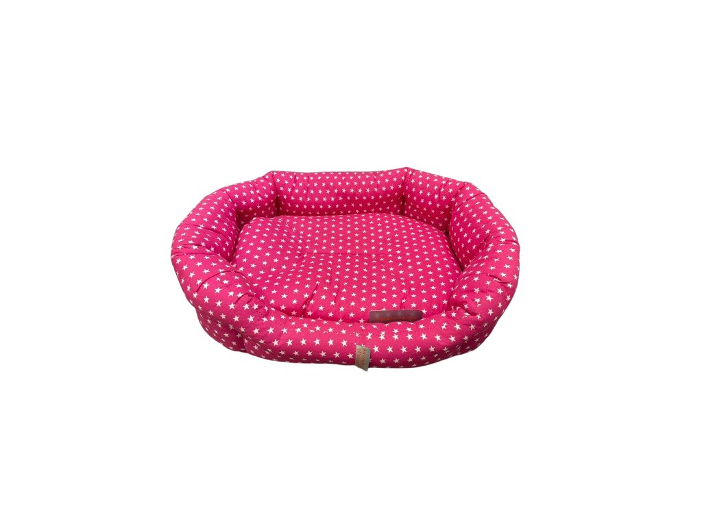 Pelíšek pro psy – osmihranný, malinový s bílými hvězdami, 60 cm