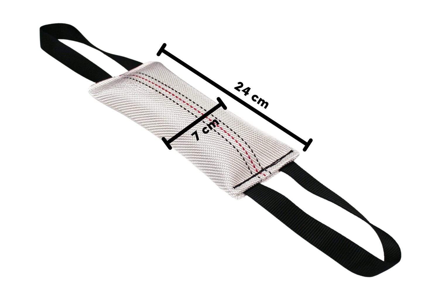 Tento pešek je vyroben z vysoce odolné hadicoviny – voděodolného materiálu, který skvěle obstojí i při intenzivním tréninku. Je vybaven dvěma pevnými popruhovými uchy pro snadné a bezpečné uchopení. Pešek slouží jako aport nebo motivační hračka při výcviku poslušnosti a je ideální jako odměna za správně splněný povel. Skvělá pomůcka pro aktivní práci se psem.