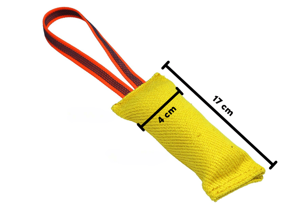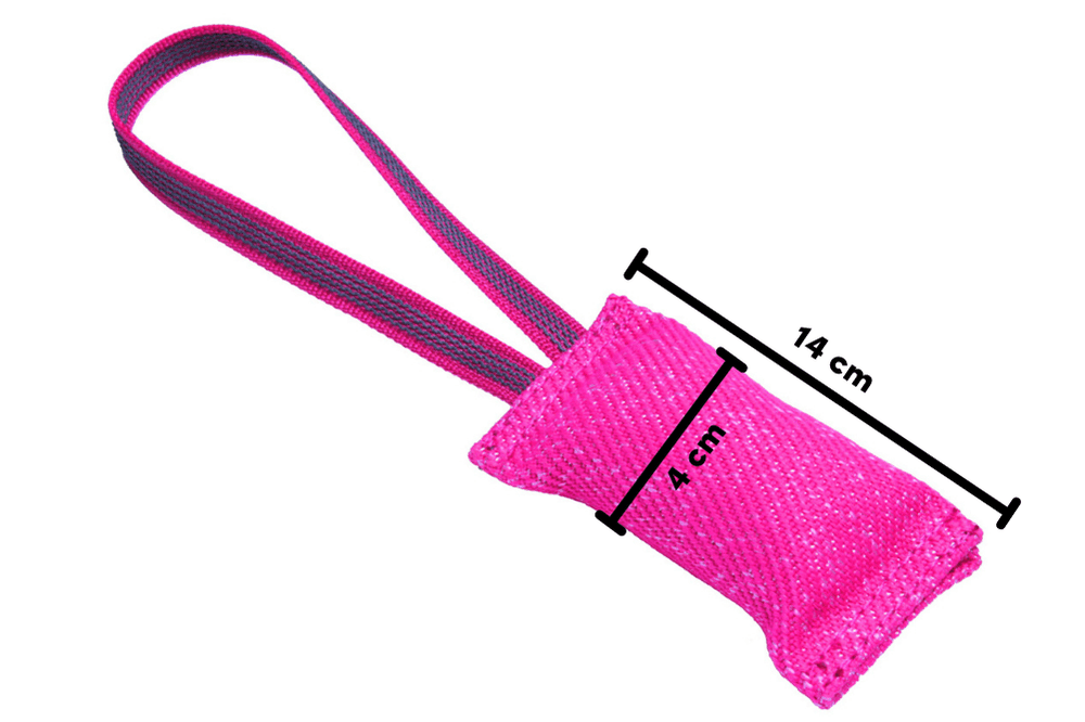 Výcvikový pešek z pevné ringo látky je ideální pomůcka pro trénink aportu i obecný výcvik psa. Je vybaven pevným uchem z pogumovaného popruhu, které zajišťuje pohodlný a bezpečný úchop při společné práci. Díky kvalitnímu zpracování a univerzální velikosti je pešek vhodný pro malá, střední i velká plemena. Skvělý pomocník pro každodenní trénink i zábavu se psem.