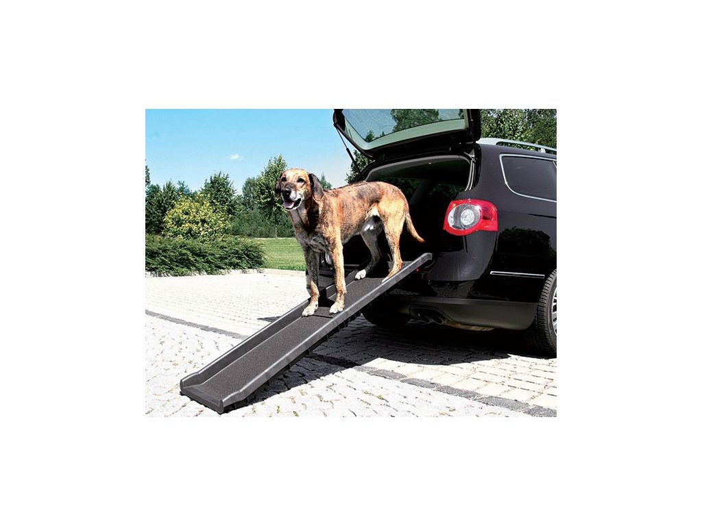 Pomůckou, která může významně přispět ke zlepšení kvality života psů, je skládací rampa určená pro usnadnění nastupování do auta.