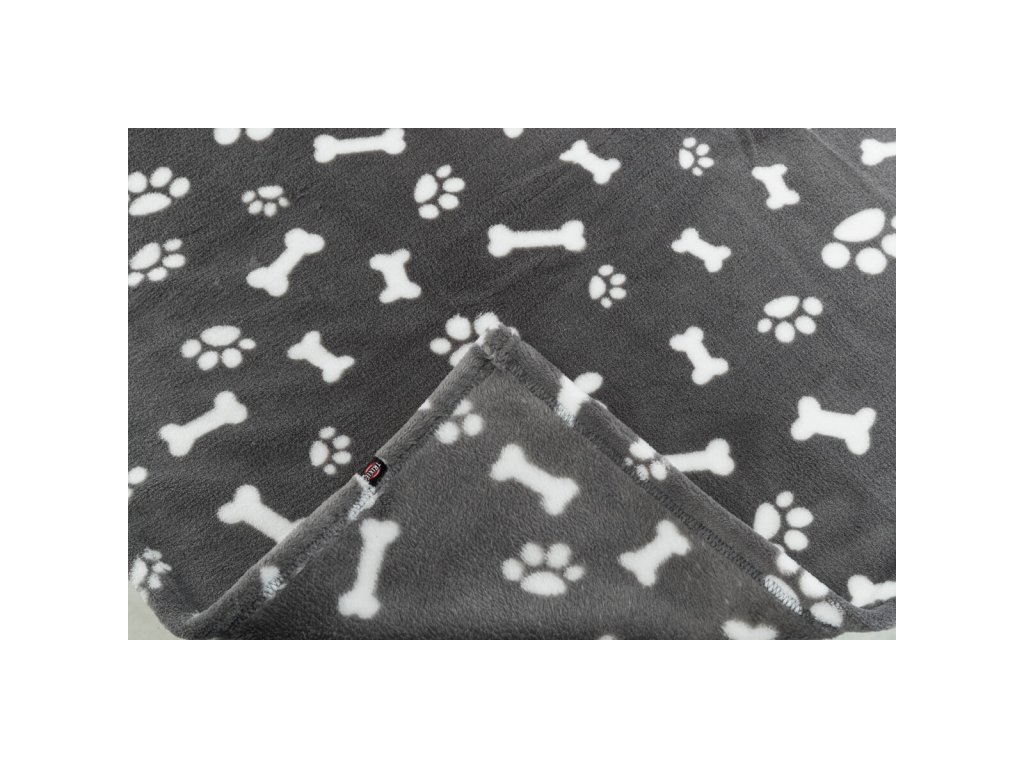 Plyšová deka KENNY, šedá s kostičkami a packami