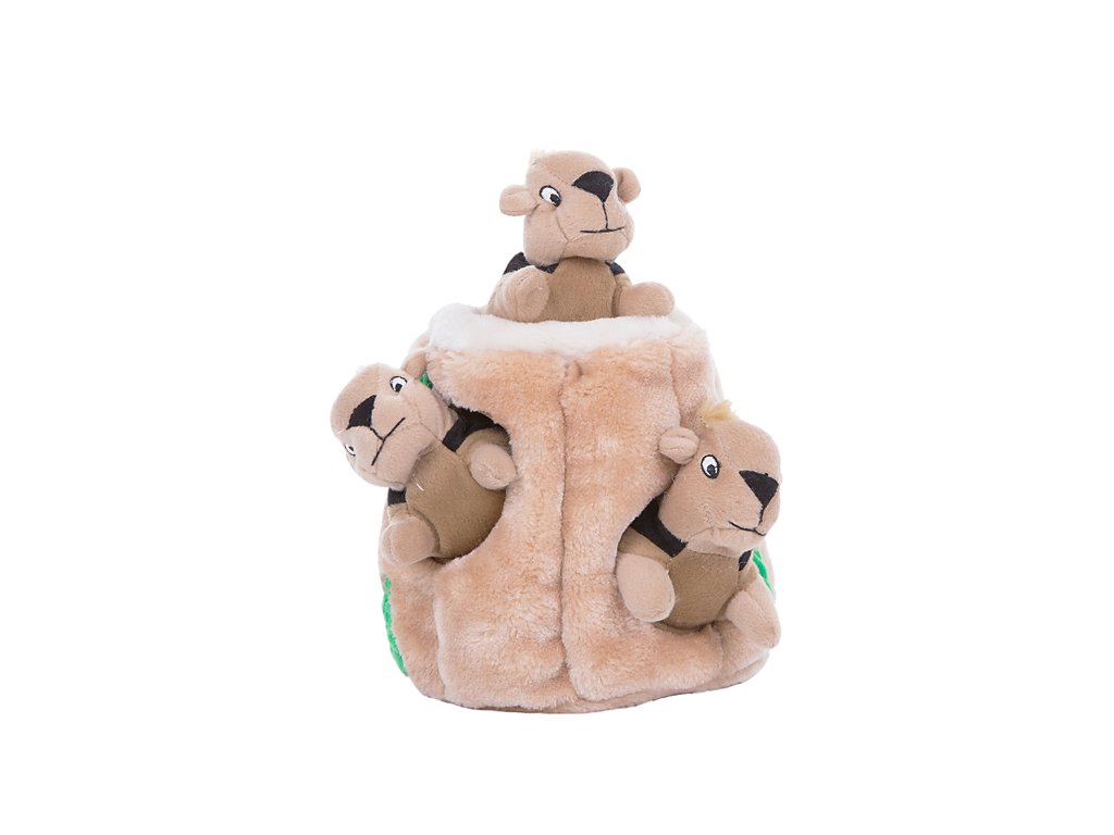 Když ti jeden plyšák nestačí, chtěj rovnou celou bandu pískacích veverek, které budeš hledat v pařezu. Plyšové puzzle Veverky v pařezu obsahují plyšový kmen stromu s několika otvory a se třemi pískacími veverkami.Schovejte veverky do pařezu a nechte svého chlupáče, aby je v otvotech vylovil a z pařezu vytáhl. S veverkami si pak může hrát. Do pařezu můžete schovat i jinou hračku nebo nějakou tu dobrotu, aby byla hra jěště zábavnější. Ideální jsou např. proužky sušeného masa nebo kvalitní žvýkací kostičky.