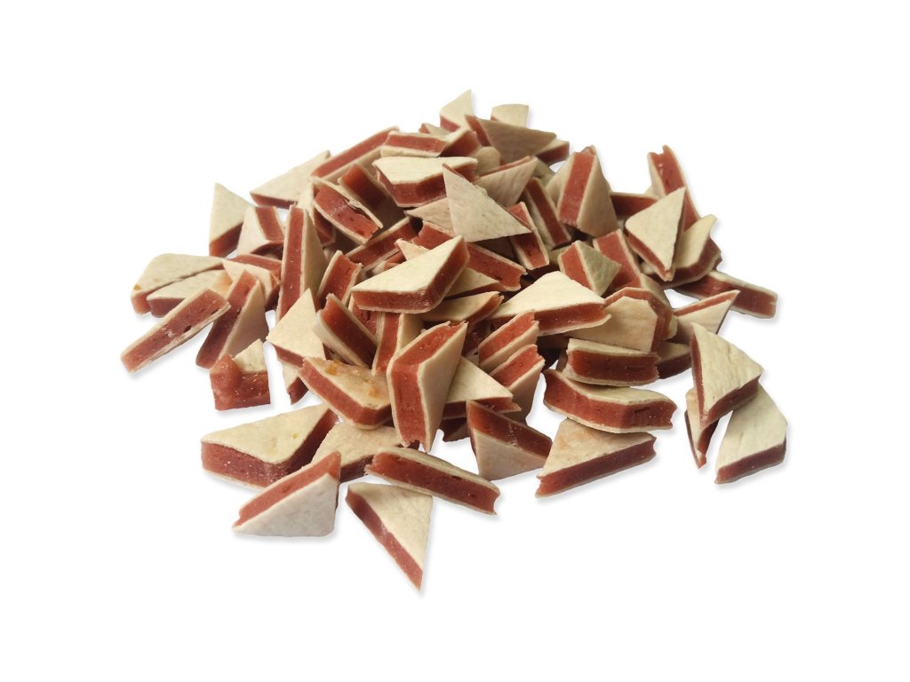 Zdravé pamlsky, které obsahují málo tuku a hodně bílkovin. Sušené horkým vzduchem.