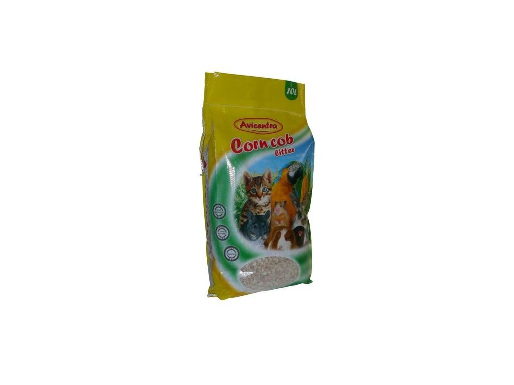 Podestýlka kukuřičná jemná 10 lJedná se o přírodní produkt bez chemických látek. Tato jemná podestýlka je univerzální a hodí se pro řadu zvířat, například pro kočky, králíky, morčata i jiné hlodavce, terarijní zvířata a exotické ptactvo. Použít ji můžete jak dovnitř klece či terária, tak i do volných misek a plat. Má velmi dobré vsakovací vlastnosti a zároveň je šetrná k životnímu prostředí. Vyrábí se ve dvou typech, hrubá a jemná. Oba typy pochází z drcených kukuřičných oklasků.