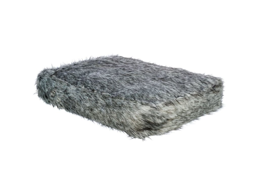 Polštář YELINA obdélníkový, dlouhý plyšový vlas, černá/šedá
