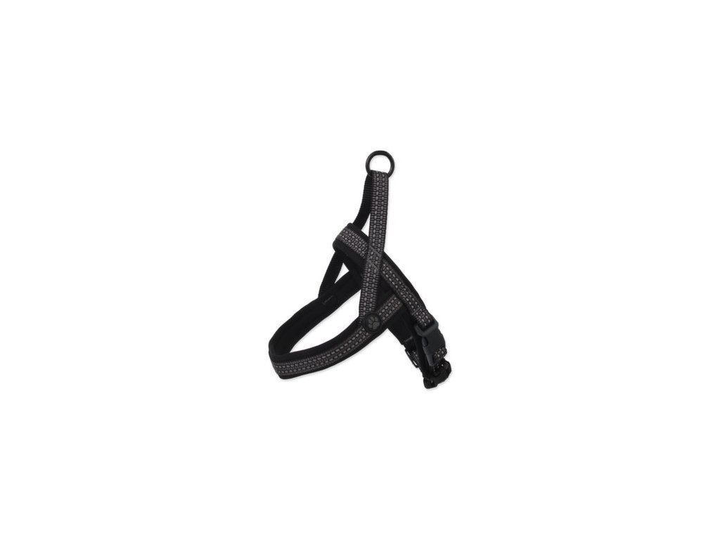 - Po obvodu celého postroje jsou všité reflexní prvky pro bezpečný pohyb zvířete