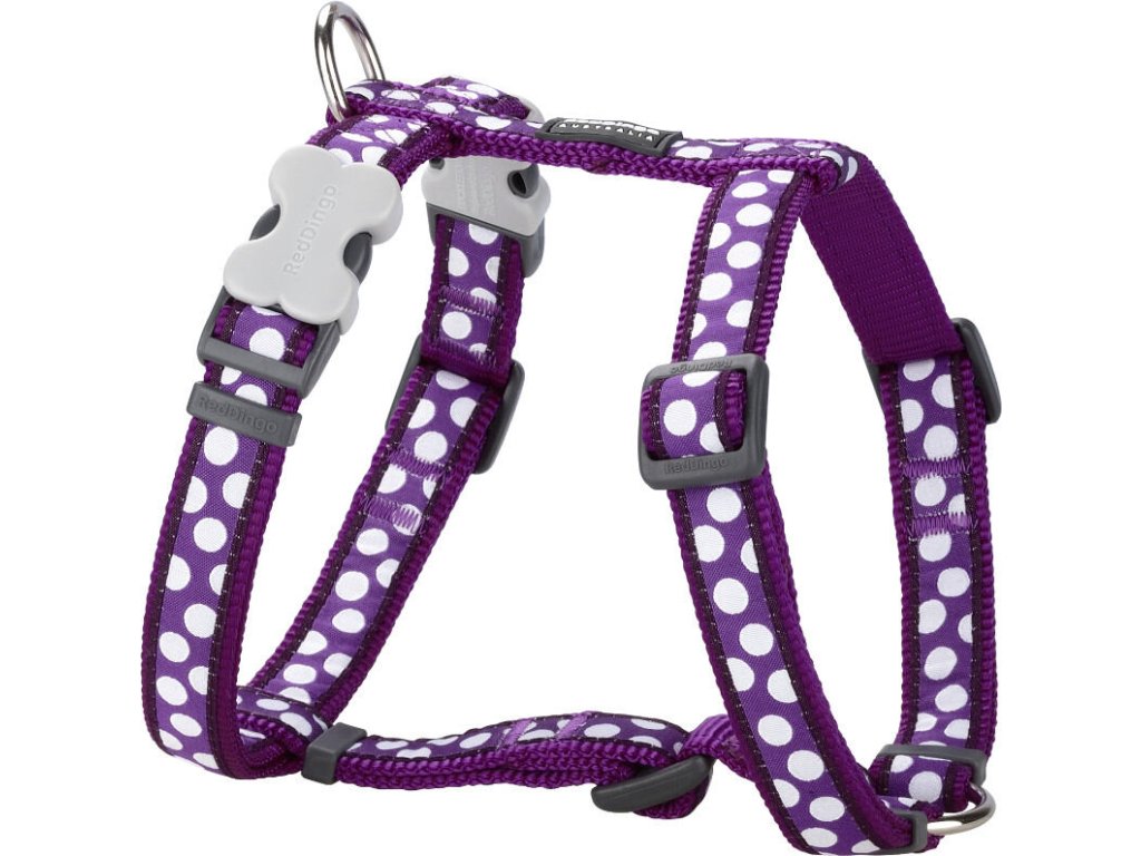 Red Dingo postroj – White Spots on Purple – 12 mm x 30-44 cm