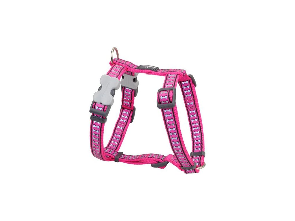 Red Dingo postroj reflexní – Bones Hot Pink – 20 mm x 45-66 cm