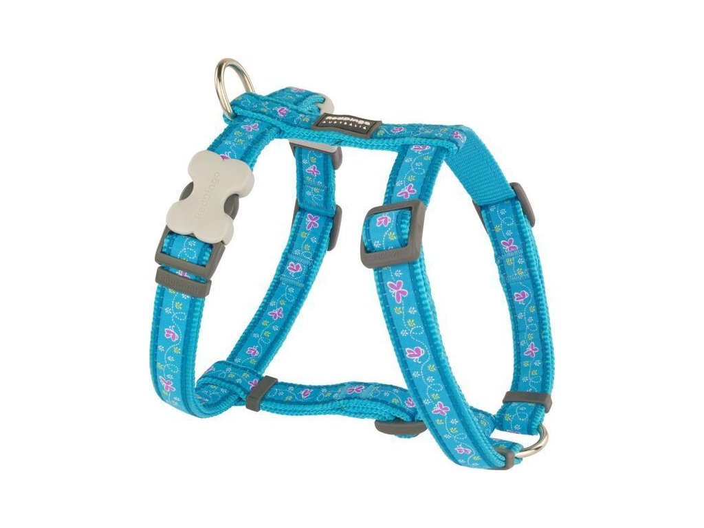 Red Dingo postroj – Butterfly Turquoise – 20 mm x 45-66 cm