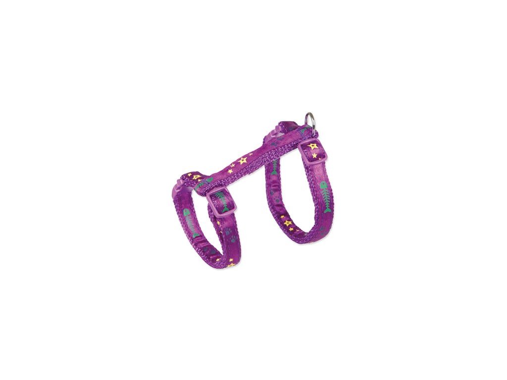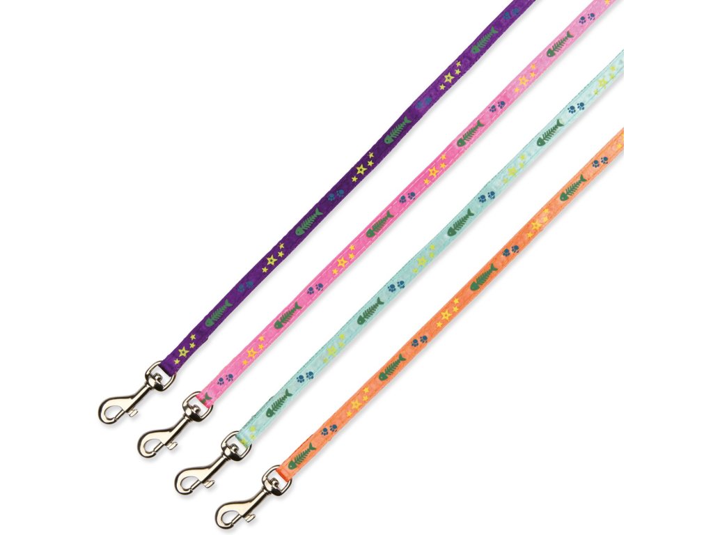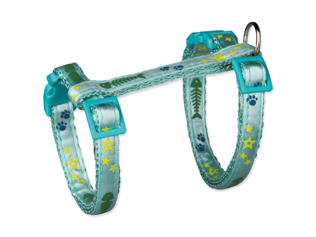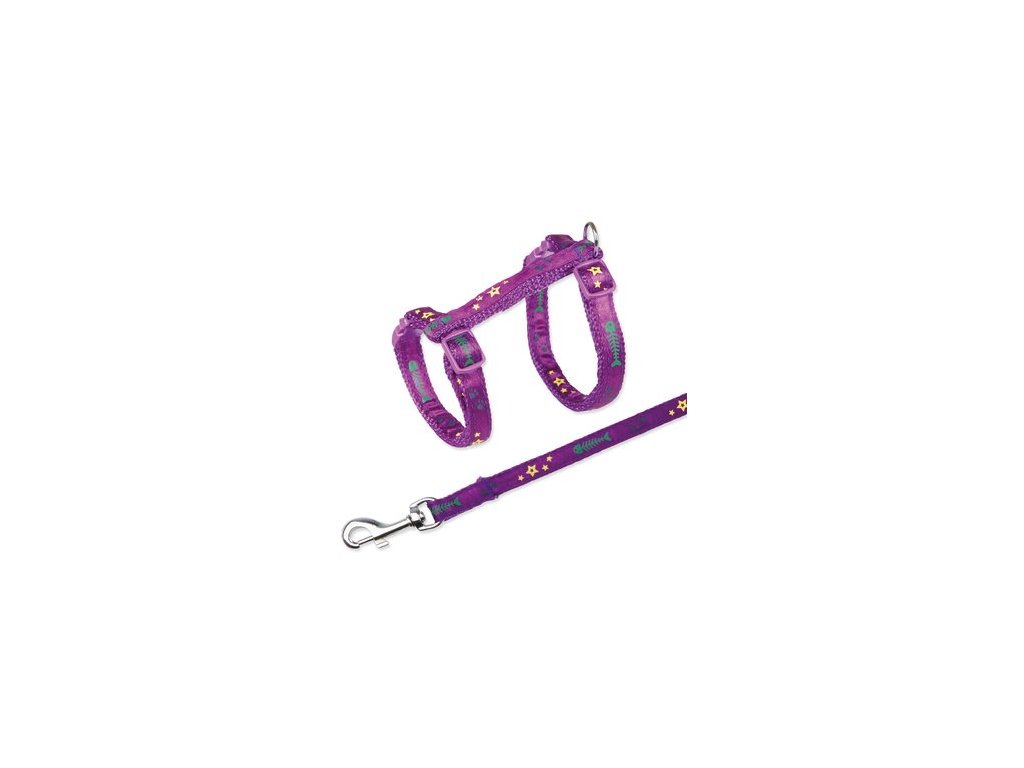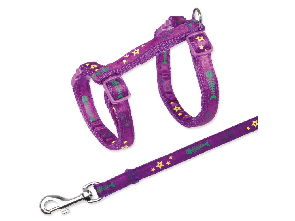 Postroj s vodítkem pro kočky milující procházky. Je vyroben z nylonu. Zvyšuje bezpečnost a předchází úrazům. Lehce nastavitelná velikost v rozmezí 22-36cm. Vodítko je dlouhé 1,2m. Zapínaní pomocí rychlospony.