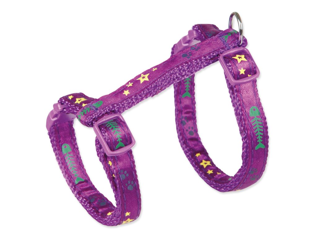 Postroj Trixie pro kočky s vodítkem fuchsiový s motivem kostí 23–39 cm/10 mm, 1,20 m