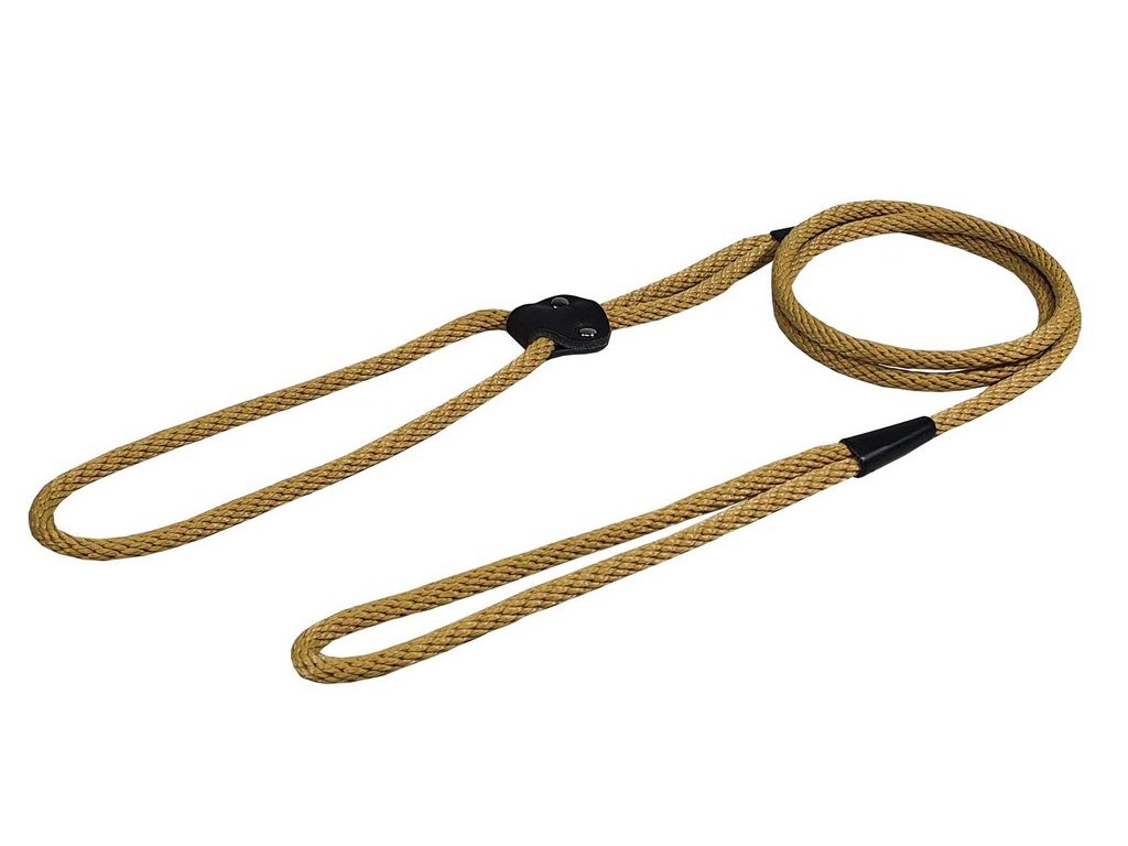 Na jednom konci se nachází pohodlné ucho pro snadné držení, na druhé straně nastavitelná smyčka, jejíž velikost lze upravit pomocí praktické kožené vsuvky. Toto vodítko je ideální pro výstavní použití, kdy je důležitá kombinace funkčnosti, pevnosti a decentního vzhledu.