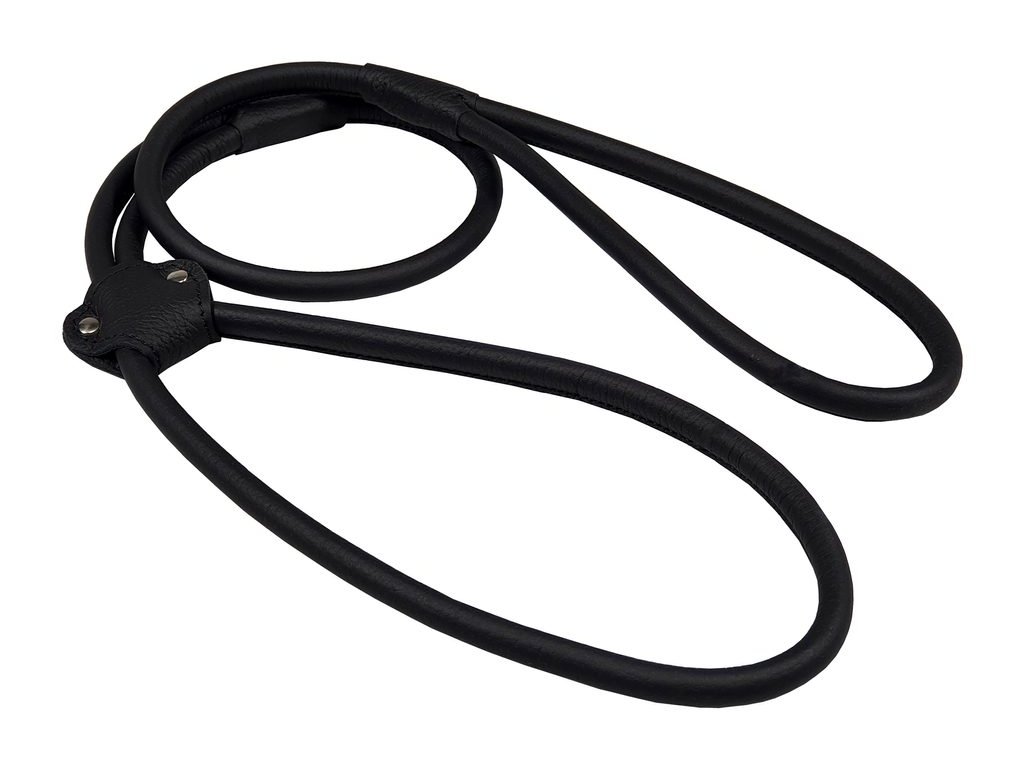 Kožené vodítko vyrobené technologií tzv. „zabalení“ je ideální volbou pro střední a velká plemena psů, zejména pro výstavní účely. Součástí vodítka je integrovaný obojek se zatahovací smyčkou, kterou lze jednoduše nastavit pomocí kožené posuvky – pes tak může být veden na volno nebo naopak těsněji u nohy, podle aktuální potřeby.