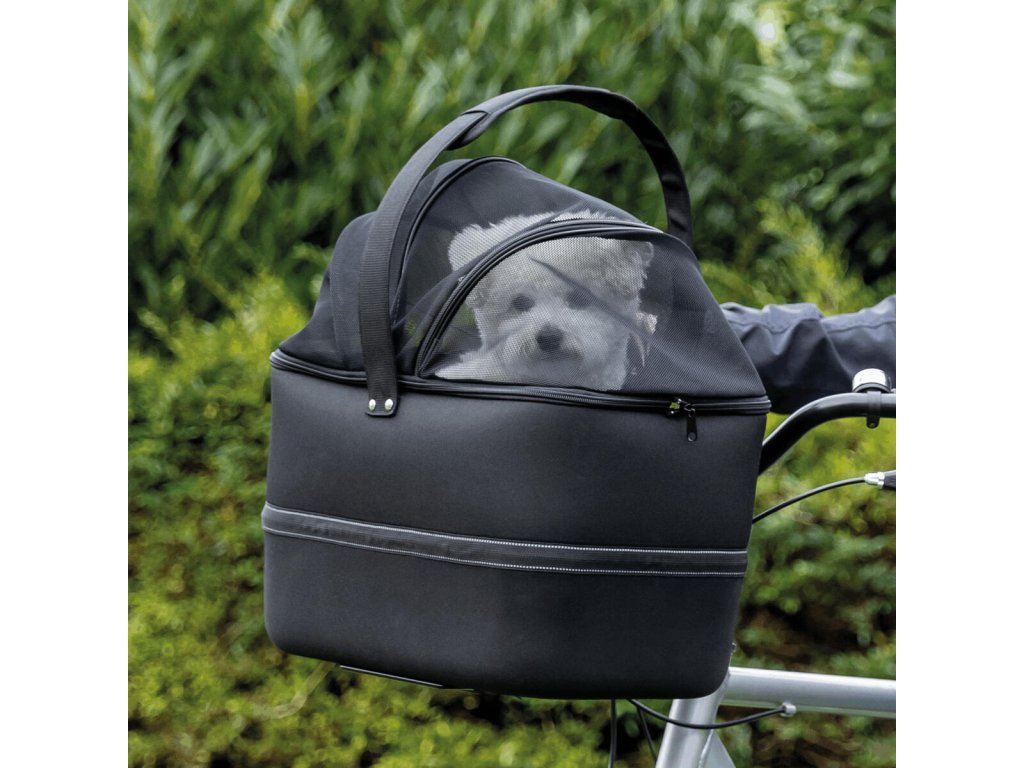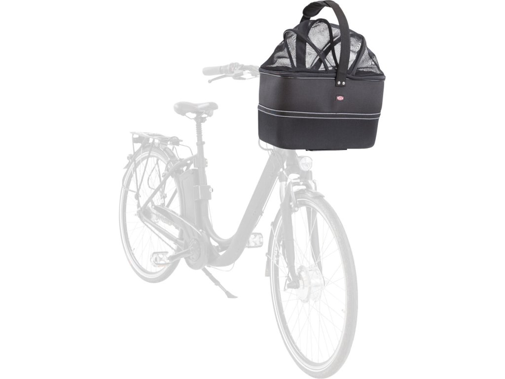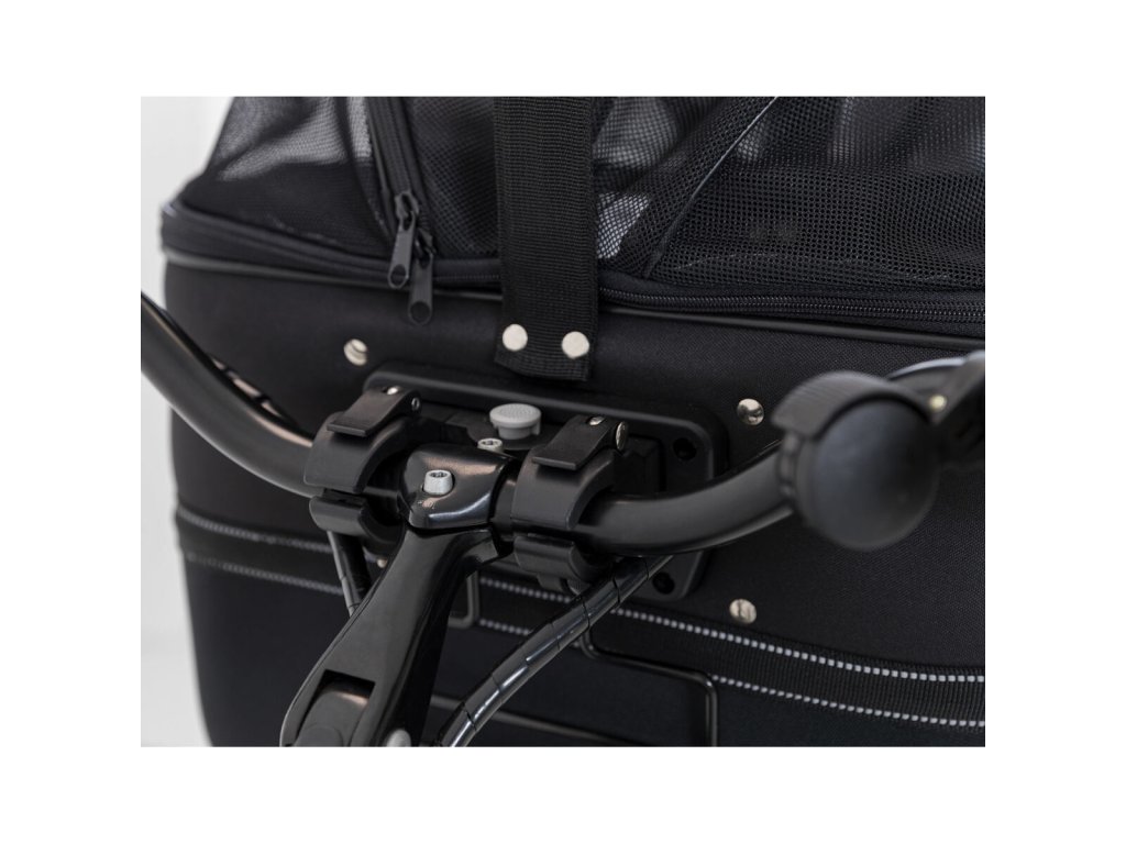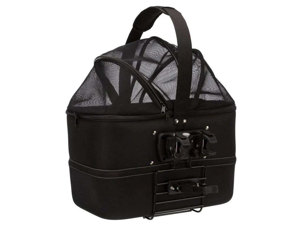 - pevný kovový rám pro bezpečný převoz zvířete na řídítkách kola