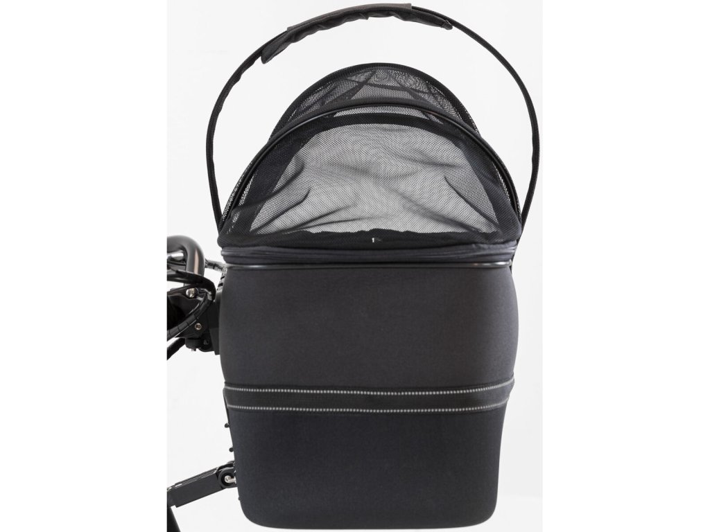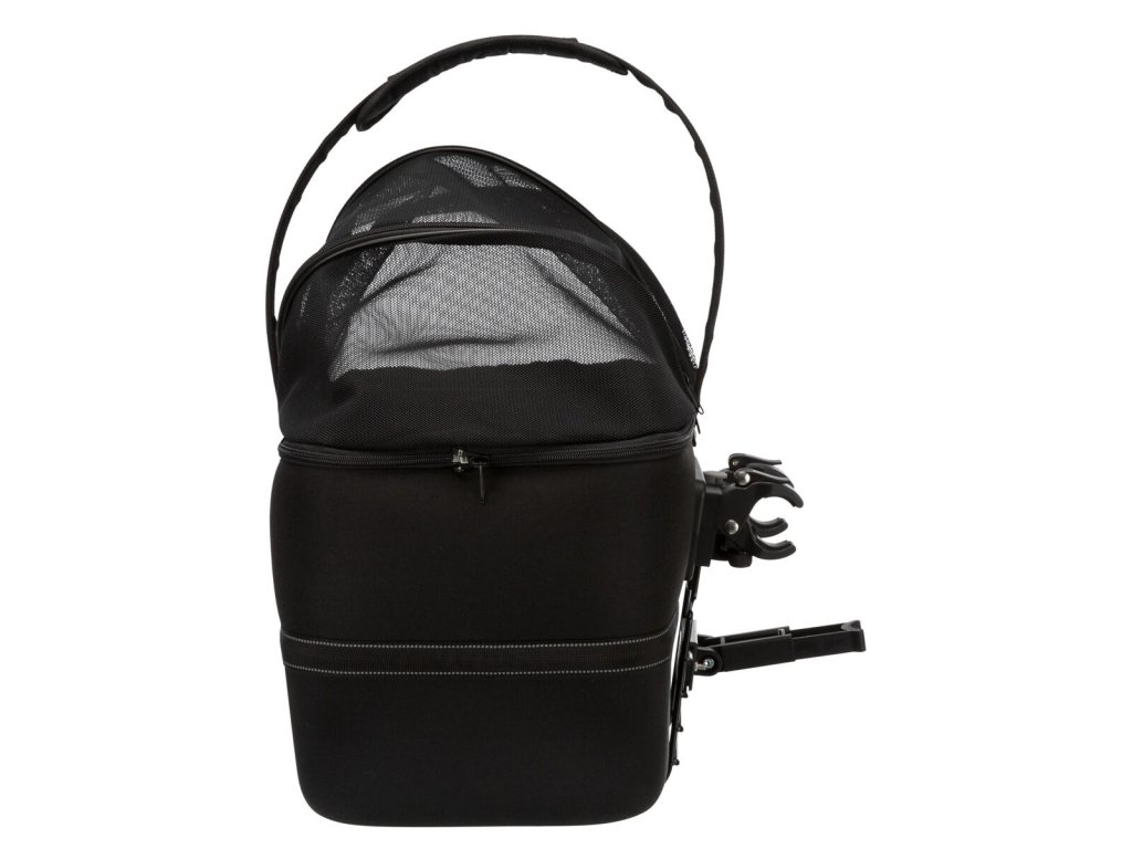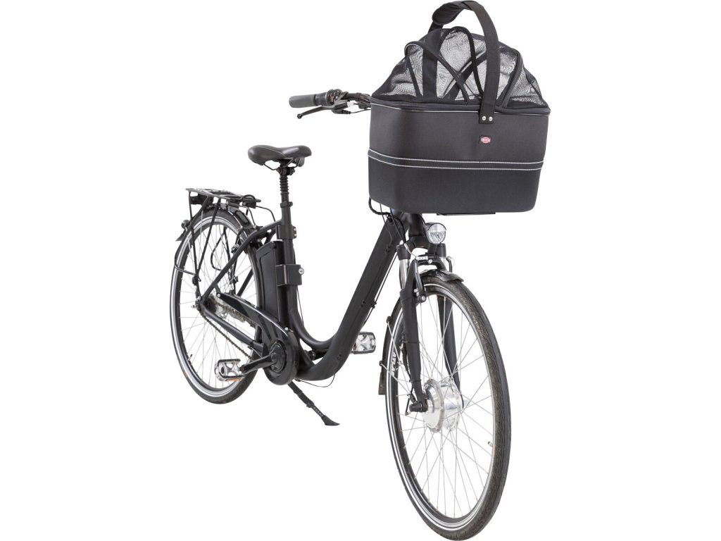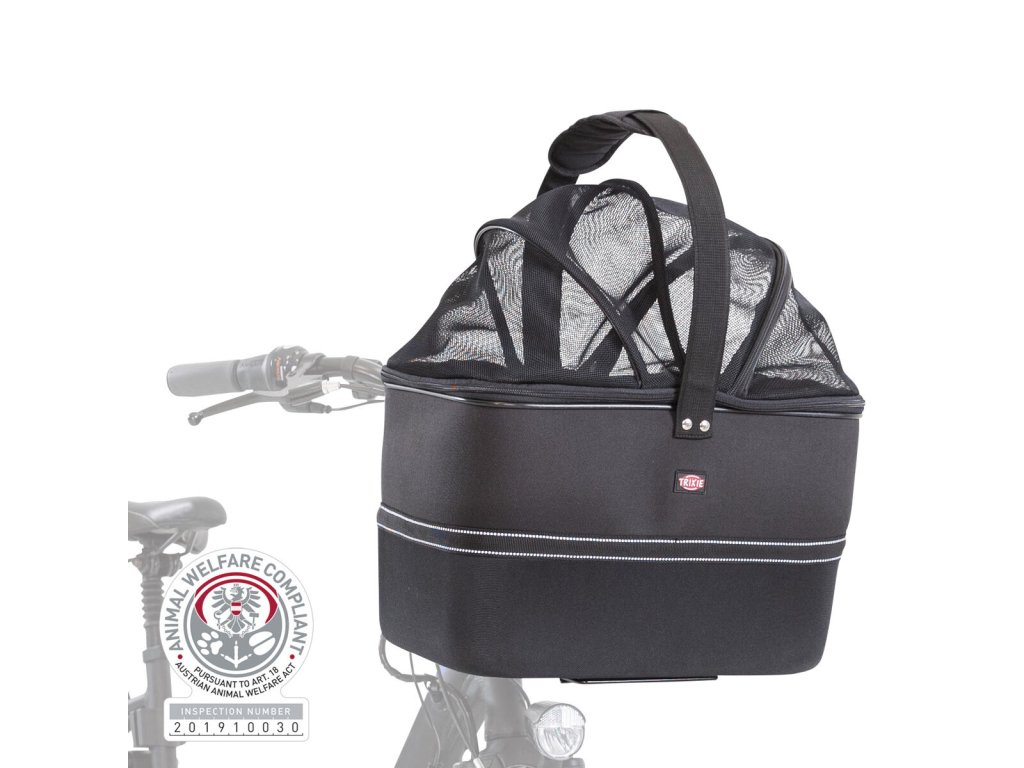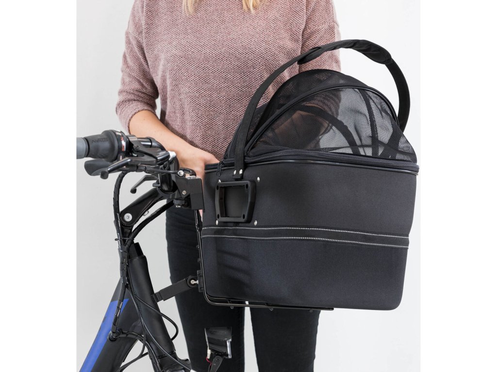 - pevný kovový rám pro bezpečný převoz zvířete na řídítkách kola