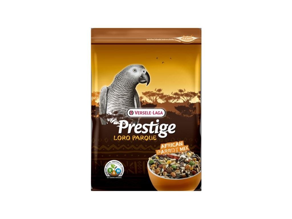 PRESTIGE prémiová směs African Parrot Mix 1 kgPrémiová směs pro papoušky. Směs semen, jejíž složení plně odpovídá nutričním potřebám větším druhům afrických papoušků. Byla vytvořena ve spolupráci s vědeckým týmem z botanicko-zoologické zahrady Loro Parque Fundación na ostrově Tenerife, kde se používá jako základní krmivo pro všechny větší druhy afrických papoušků (papoušek žako, papoušky senegalské, papoušky konžské,...).