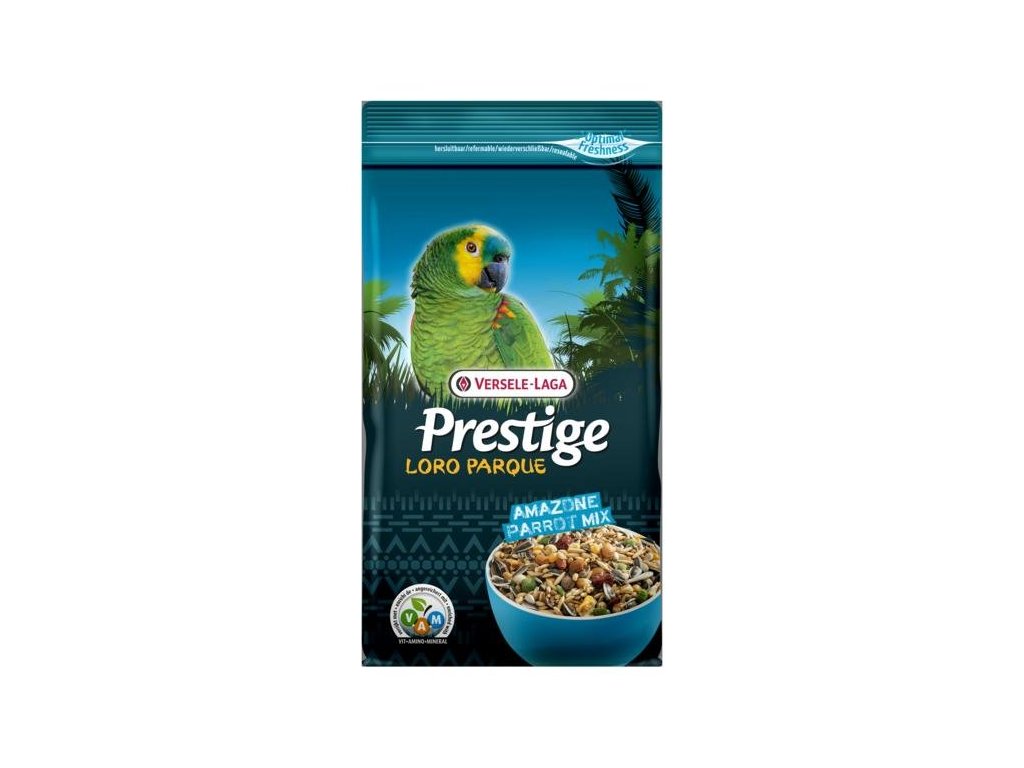 PRESTIGE prémiová směs Amazone Parrot Mix 1 kgKompletní krmivo obohacené o vitamíny, aminokyseliny a minerální látky. Směs semen, jejíž složení plně odpovídá nutričním potřebám amazoňanů. Byla vytvořena ve spolupráci s vědeckým týmem z botanicko-zoologické zahrady Loro Parque Fundación na ostrově Tenerife, kde se používá jako základní krmivo pro všechny středně velké jihoamerické papoušky (amazoňany, amazónky, aratingy ...).