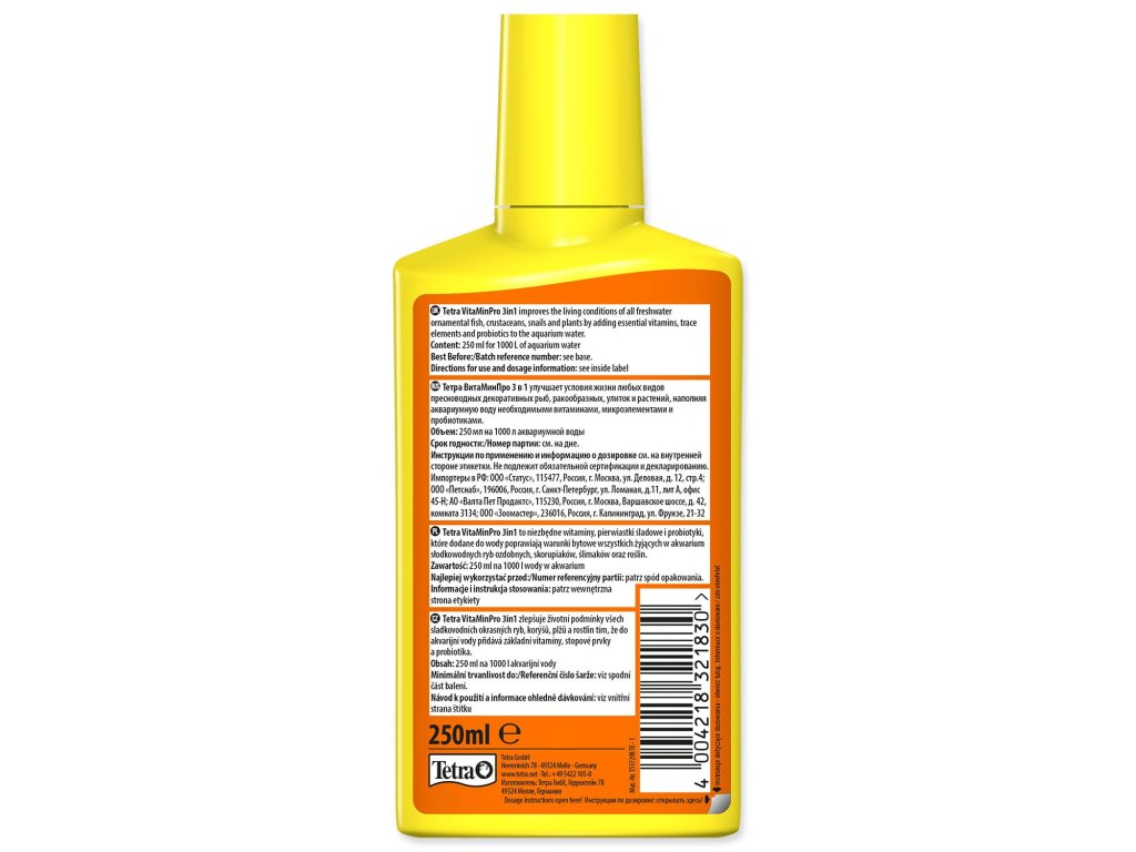 Tento tekutý prostředek zlepšuje životní podmínky všech sladkovodních okrasných ryb, korýšů, hlemýžďů a rostlin tím, že do akvarijní vody přidává základní vitamíny, stopové prvky, minerály a probiotika.