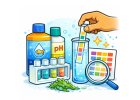 - Testy akvarijní vody – pH, KH, GH, NH₃/NH₄⁺, NO₂⁻, NO₃⁻, PO₄³⁻, Fe, CO₂.