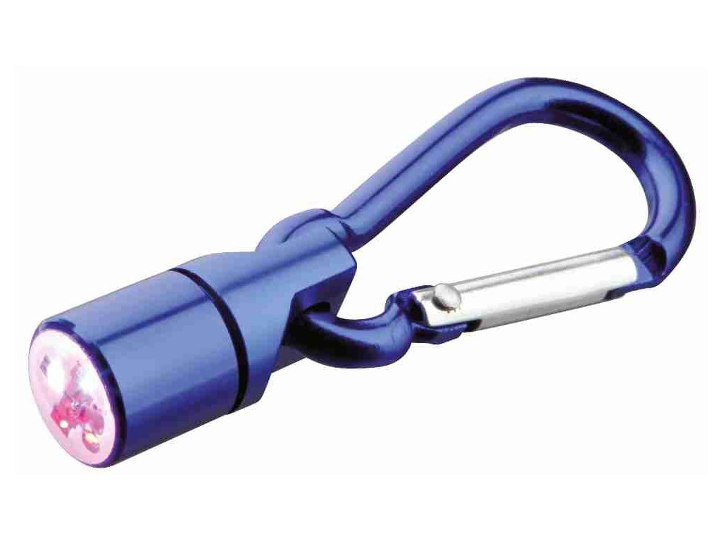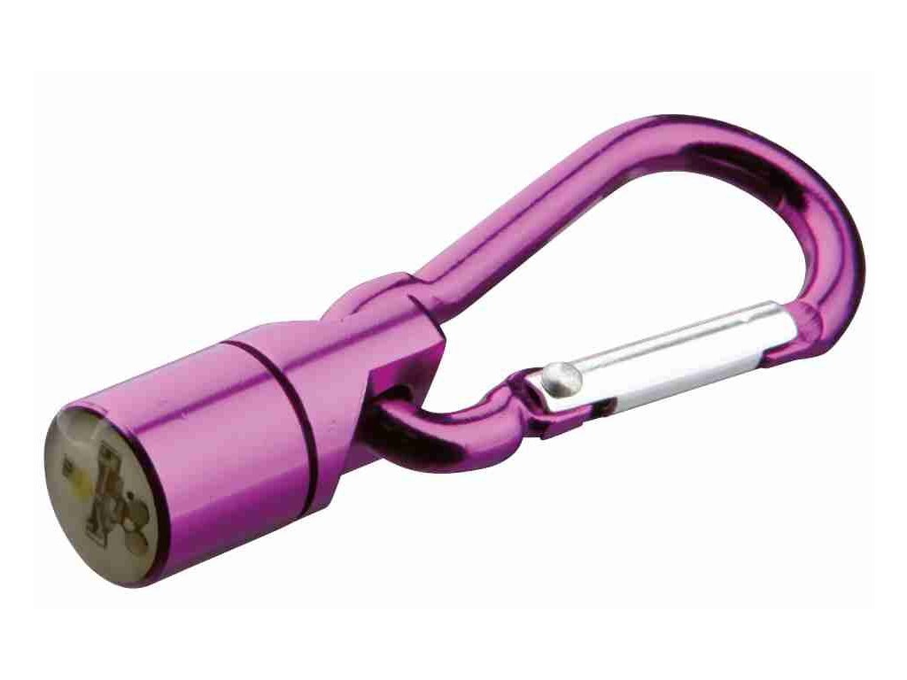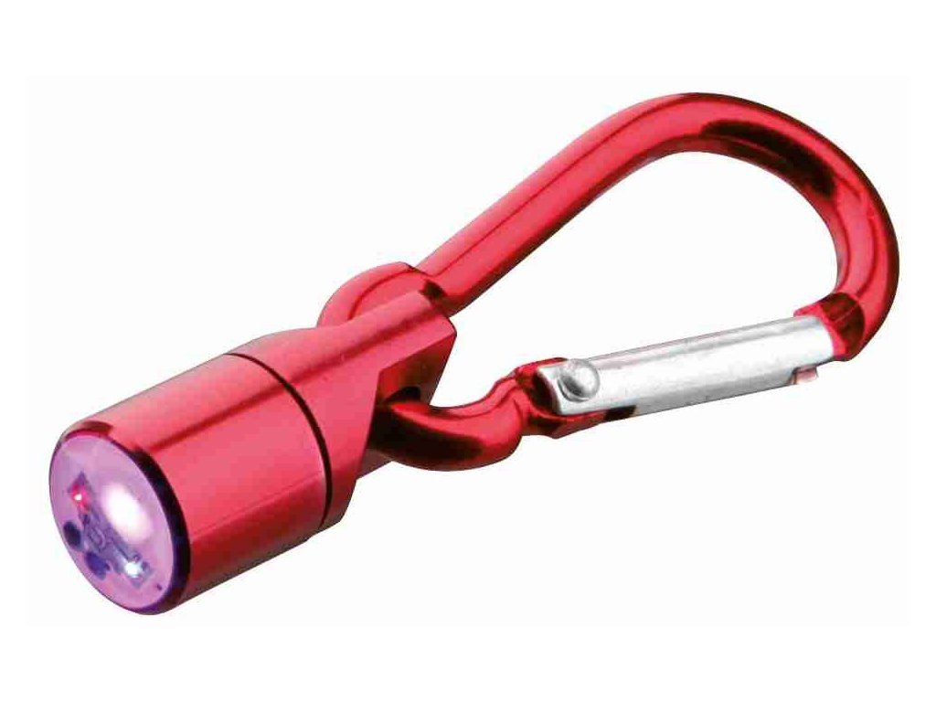 Barevné blikací svítítko s karabinou, světlo ČV, MD a bílé (RP 2,10 Kč)