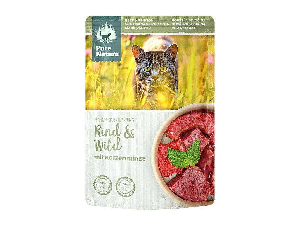 Kvalitní hovězí maso se zvěřinou vyladěné šantou kočičí je lahůdková kombinace pro kočičí pohodu. Pure Nature kapsička Hovězí a Zvěřina je přírodní kompletní krmivo pro dospělé kočky. Hovězí a zvěřina tvoří perfektní kombinaci proteinů, které jsou bohaté na přirozené živiny. Receptura je doplněná o šantu kočičí a světlicový olej.Zvěřina je velmi bohatá na proteiny. Maso ze zvěřiny je velmi výživné, a zároveň lehce stravitelné, obsahujíce spoustu minerálních látek (železo, draslík, fosfor nebo zinek), vitamíny skupiny B a kočkám navíc skvěle chutná.