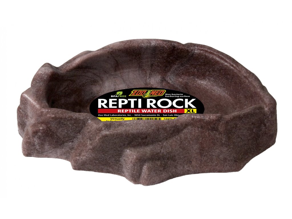 Repti Rock Miska na voduMiska na vodu pro plazy a další terarijní zvířata v designu, který připomíná kámen, díky čemuž ladí do interiérů většiny terárií a neruší celkový estetický dojem. Miska je nízká, takže se do ní zvířata snadno dostanou. Vnitřek misky je hladký a bez pórů pro snadné omývání a zamezení růstu bakterií. Vyrobeno ze 100% recyklovaného plastu. Bez BPA.