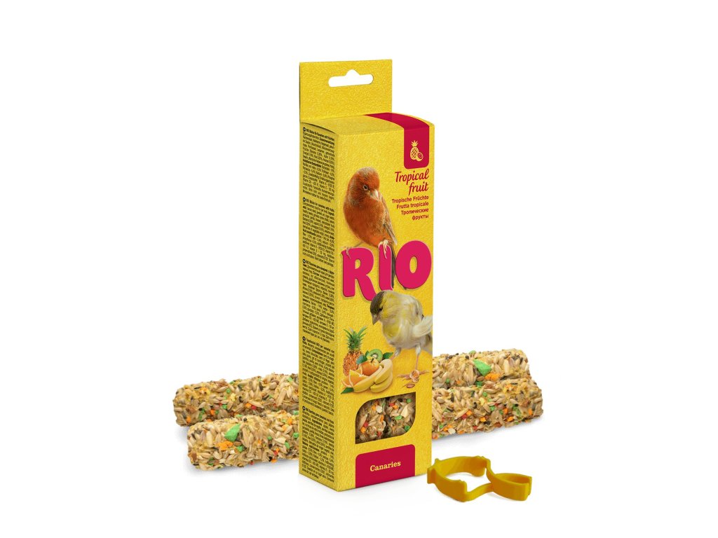 RIO tyčinky pro kanárky s tropickým ovocemDopřejte svým kanárkům chutnou pochoutku v podobě dvou tyčinek plných zdravých semínek, medu a tropického ovoce. Tyto tyčinky obsahují cenné vitaminy a minerální látky. Podporují vitalitu a zdraví a rozvíjí u ptáků přirozené chování. Tyčinky lze volně vložit do klece, nebo je zavěsit.