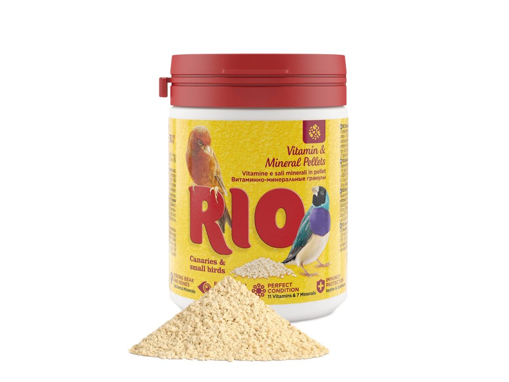 RIO vitaminové a minerální pelety pro kanárky a drobné exotyVitaminové a minerální peletky pro kanáry a drobné exotické ptactvo mají unikátní složení pro maximální úroveň výživy a zdraví ptáků. Jsou vhodné ke každodennímu podávání. Podporují zdravé peří, výborný stav zobáku, pevnost kostí, zlepšují zrak, zkvalitňují peří a mají blahodárný vliv na imunitní systém.