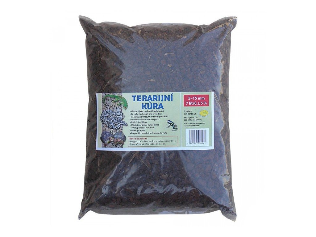 Robimaus terarijní kůraDopřejte svému terarijnímu zvířeti kvalitní stromovou kůru pro dokonalou vzhledovou i biologicky funkční imitaci jeho přirozeného prostředí. Kousky stromové kůry velké cca 15-25 mm se hodí do všech typů terárií, suchých i vlhkých. Ideální pro suchozemské želvy, hady, ještěry, gekony, varany, scinky a další zvířata.