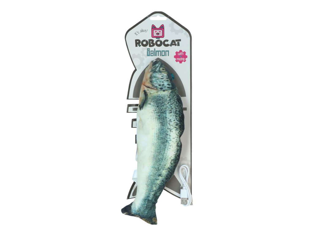 Nemusíš na Aljašku, aby sis chytil svého lososa. Když budeš chtít, můžeš mu i doma ukázat, co jsi za šelmu. Jedinečná mechanická hýbací hračka pro kočky, která reaguje interaktivně na dotyk.Robocat losos bude vaši kočku neustále vybízet ke hře a samotnému úlovku. Tato ryba se pohybuje sama a je také naplněna Madnipem. Není hračka jako hračka, samotný vzhled spíše připomíná živého lososa u vás doma, který skáče, svíjí se a pohybuje se.